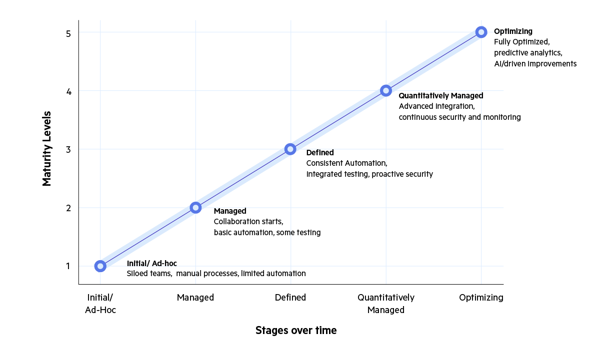 Automation is essential, but higher maturity levels demand smarter, predictive automation. Instead of only automating security tests and code integration, organizations can use AI to predict bottlenecks and vulnerabilities before they happen. This predictive capability allows for faster decision-making and better risk mitigation.Proactive Monitoring