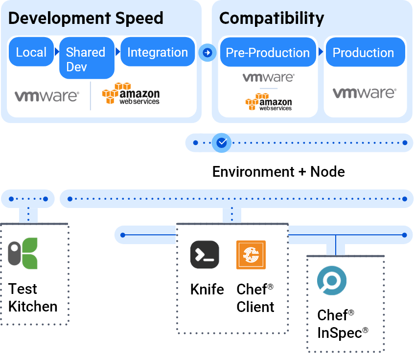 Together, Chef and VMware give you the tools you need to reliably deploy applications on premises and in the cloud.