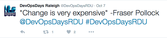 Chef was a Gold sponsor of DevOpsDays Raleigh on October 6th and 7th at the McKimmon Center. This inaugural event was a wild success with a strong showing from members of the local Triangle DevOps Meetup group.