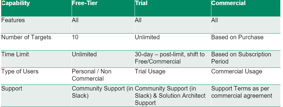 2. We are standardizing three licensing tiers: Free, Trial and Commercial.