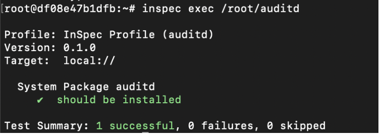 $ inspec exec auditd-0.1.0.tar.gz -t