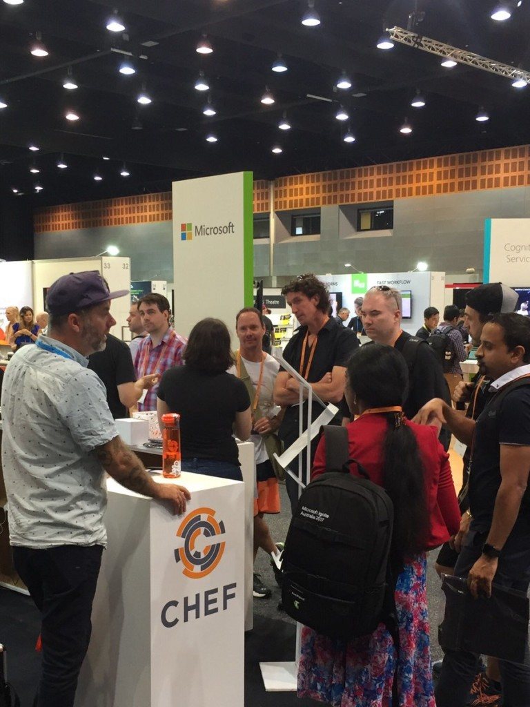 Chef had our first presence at Microsoft Ignite Australia in the Gold Coast February 14-17 and it was truly amazing! Wendy Smith, Nell Shamrell, and I made the long journey down under from our Seattle headquarters to join our team in Australia: Paul Took and Matt Ray. Paul and Matt have been getting Chef activity heating up these past 8 months.
