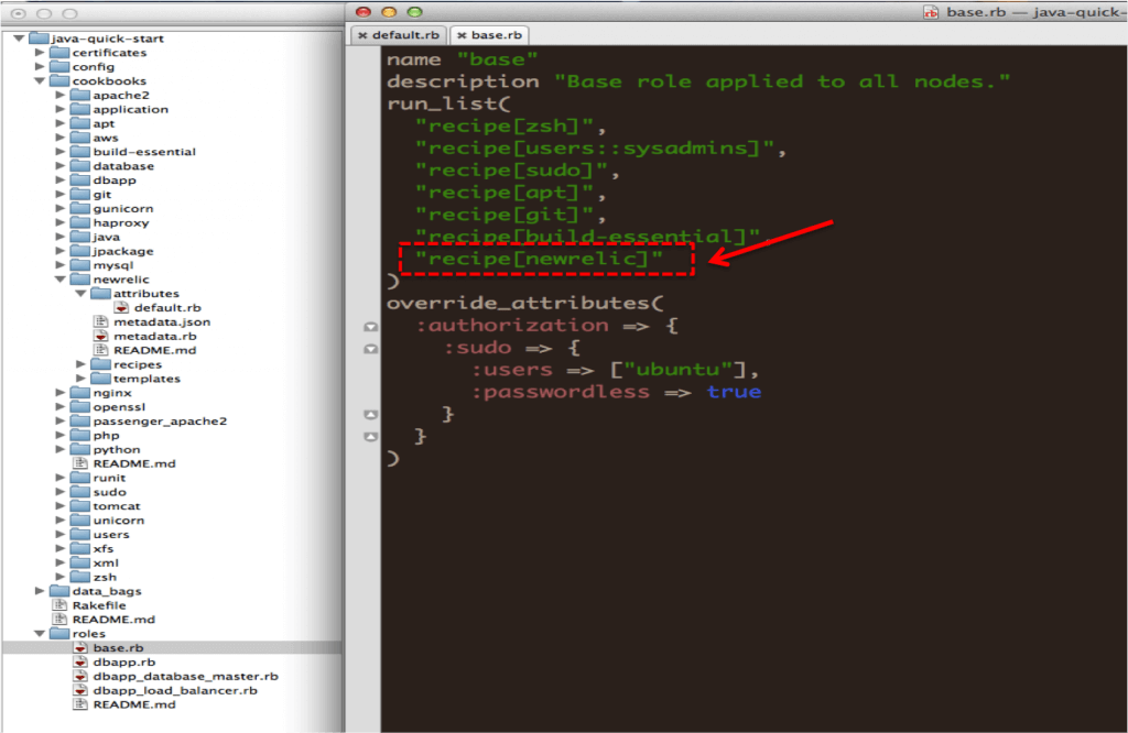 3) Drop the newrelic recipe at the end of the base role’s run list and update roles (alternatively, this could be done in the webUI)