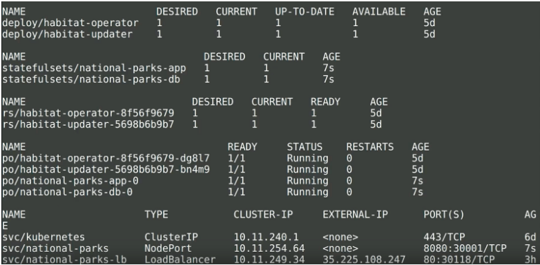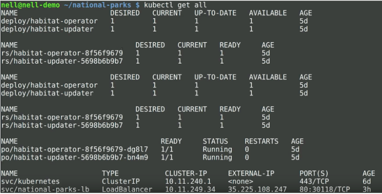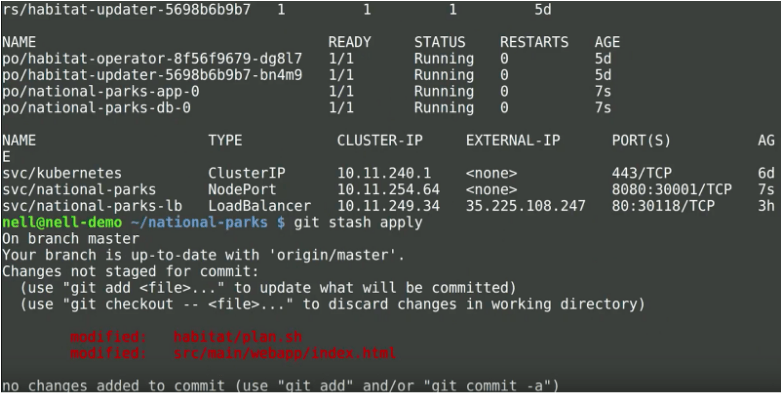 $ git clone git@github.com:habitat-sh/national-parks.git $ cd national-parks $ ls habitat-operator README.md gke-service.yml habitat.yml