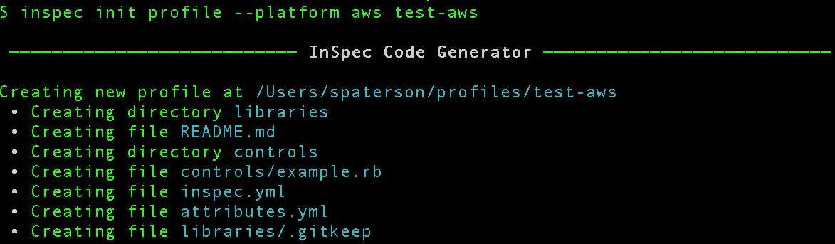 As part of the upcoming InSpec v4 release, the existing AWS resources previously shipped as part of InSpec have been revisited and reorganised into a standalone resource pack. The new resource pack depends on AWS SDK version 3. This can be used today following the instructions on the resource pack page. Following the same pattern, let’s create the InSpec AWS profile: