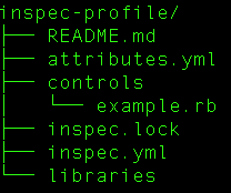 This creates an InSpec profile locally with the following structure: