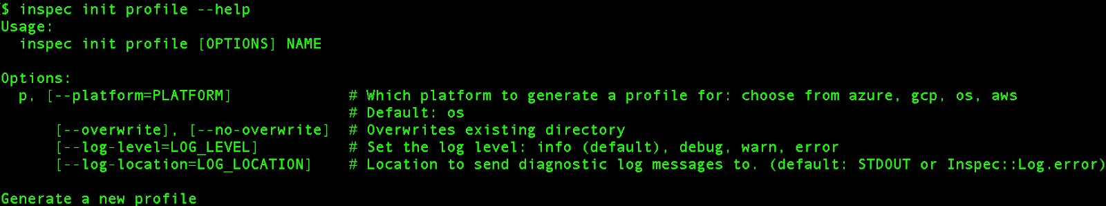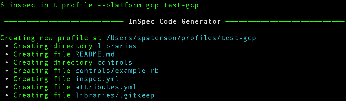 To get started with InSpec on GCP, let’s create the profile: