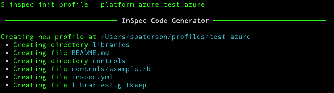 Creating the InSpec profile for Azure using the same command: