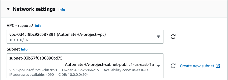 o If AWS VPC uses Subnet, set private_custom_subnets to the three private subnets we created in the prerequisites step and public_custom_subnets to the three public subnets we created in the prerequisites step.