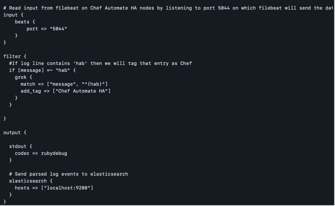 - Set up Chef Automate HA with access to Logstash over the configured TCP Port (usually TCP 5044).