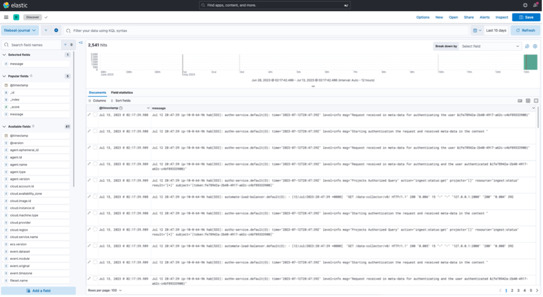 - In Kibana, navigate to "Discover," and you will see the filtered results based on your configuration.