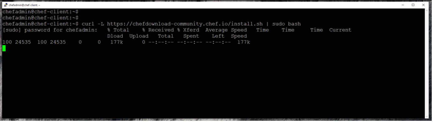 Similarly, for a Windows environment, using the install.ps1 script initiates the download and installation of the latest version of Chef: