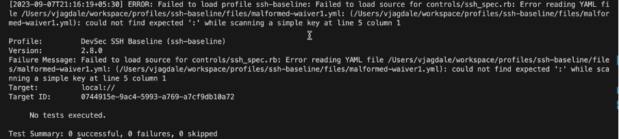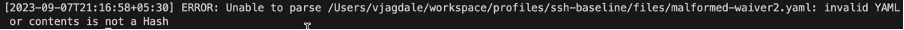 Let’s look at a few cases of malformed waiver files and how Chef InSpec reacts to it.