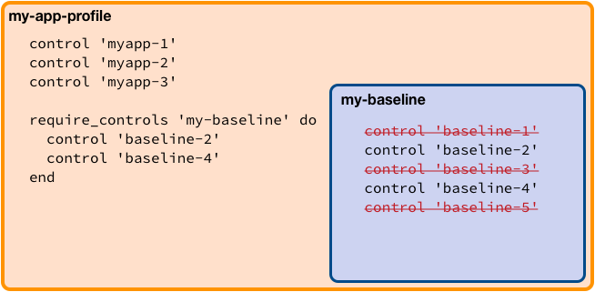 Whenever my-app-profile is executed, in addition to its own controls, it will run only the controls specified in the require_controls block. In the case, the following controls would be executed:
